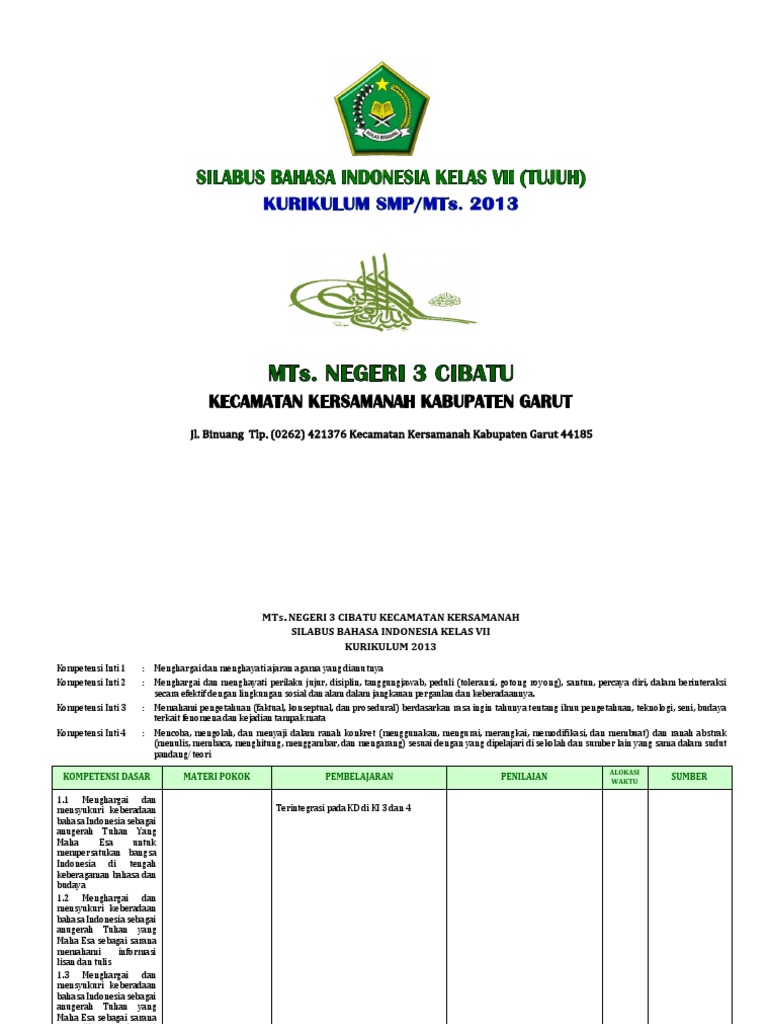 Silabus bahasa indonesia kelas 7 kurikulum 2013 terbaru. Semoga dengan adanya silabus ini dapat membantu. Berikut ini adalah silabus bahasa indonesia smp kelas 7 kurikulum 2013 (k13) semester 1 dan semester 2, yang mana materi pelajaran ini merupakan edisi revisi terbaru yang mungkin bisa langsung digunakan tempat anda mengajar. Silabus pjj bahasa indonesia smp mts kelas 7, 8, 9 semester 1 dan 2. Silabus terbaru bahasa indonesia kelas 7 2021 semester 2.